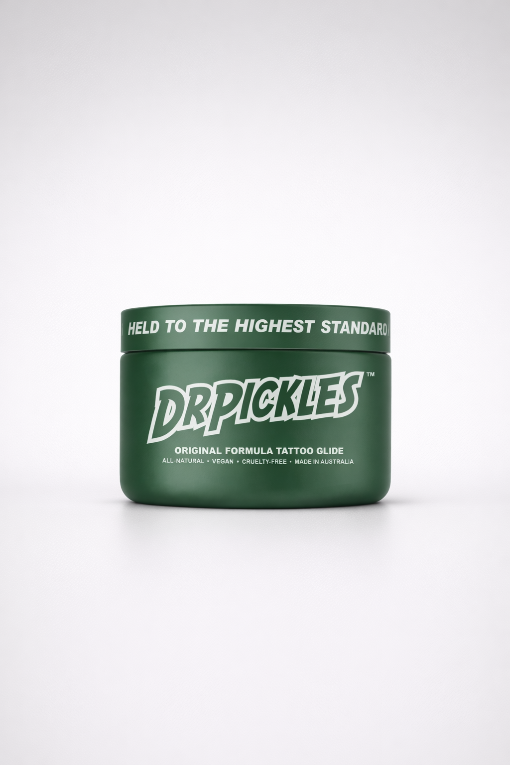 Whether you're a seasoned artist or a first-time tattoo enthusiast, Dr Pickles x Elric Gordon's Tattoo Glide is your trusted companion for achieving exceptional results with every tattoo. Elevate your artistry, indulge your skin, and experience the difference today